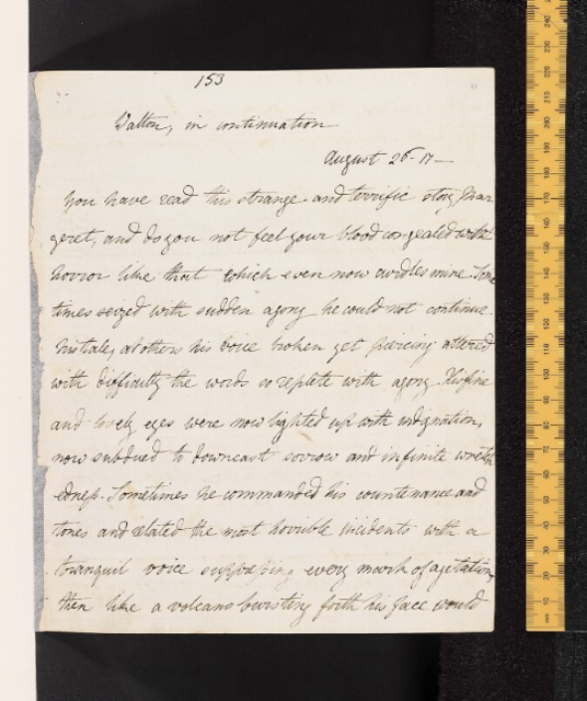 Manuscript photographs courtesy of the Shelley-Godwin Archive. This manuscript page is stored at the Bodleian Library at the University of Oxford. Preferred citation from the Shelley-Godwin Archive: Shelley, M. W. "Frankenstein, Volume III", in The Shelley-Godwin Archive, MS. Abinger c. 58, 21r. Retrieved from http://shelleygodwinarchive.org/sc/oxford/frankenstein/volume/iii/#/p41