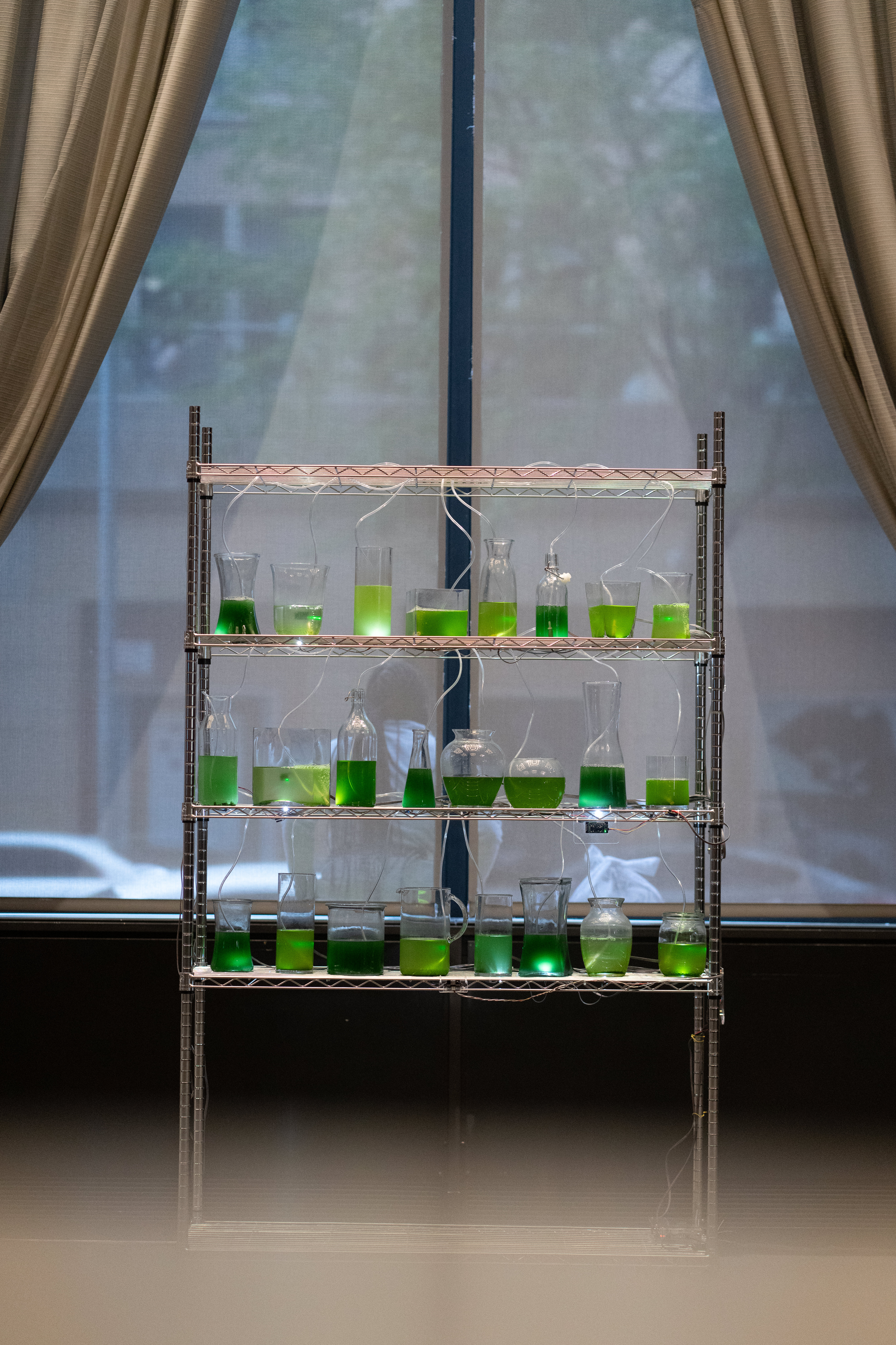 Raspberry Pi, Light Sensor, CO2 Sensor, IR Sensor, Living Algae, Storage Shelf, Glasses