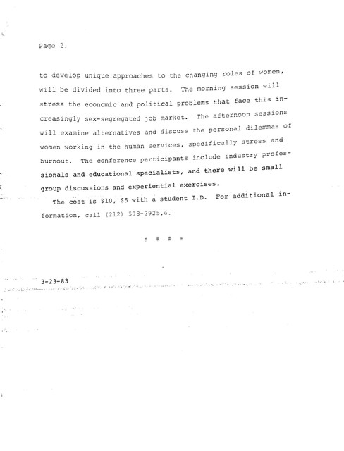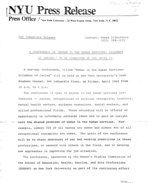 Women in the Human Services: Dilemmas of Caring Conference Press Release (1983)