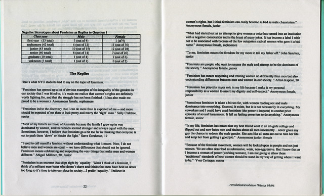 revolution/evolution Feminism at NYU Article (1995-1996)