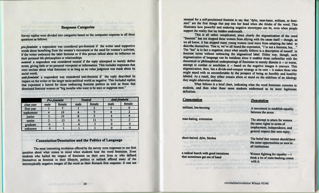 Feminism at NYU article from the 1995-6 Winter issue of revolution/evolution Vol1 No1.