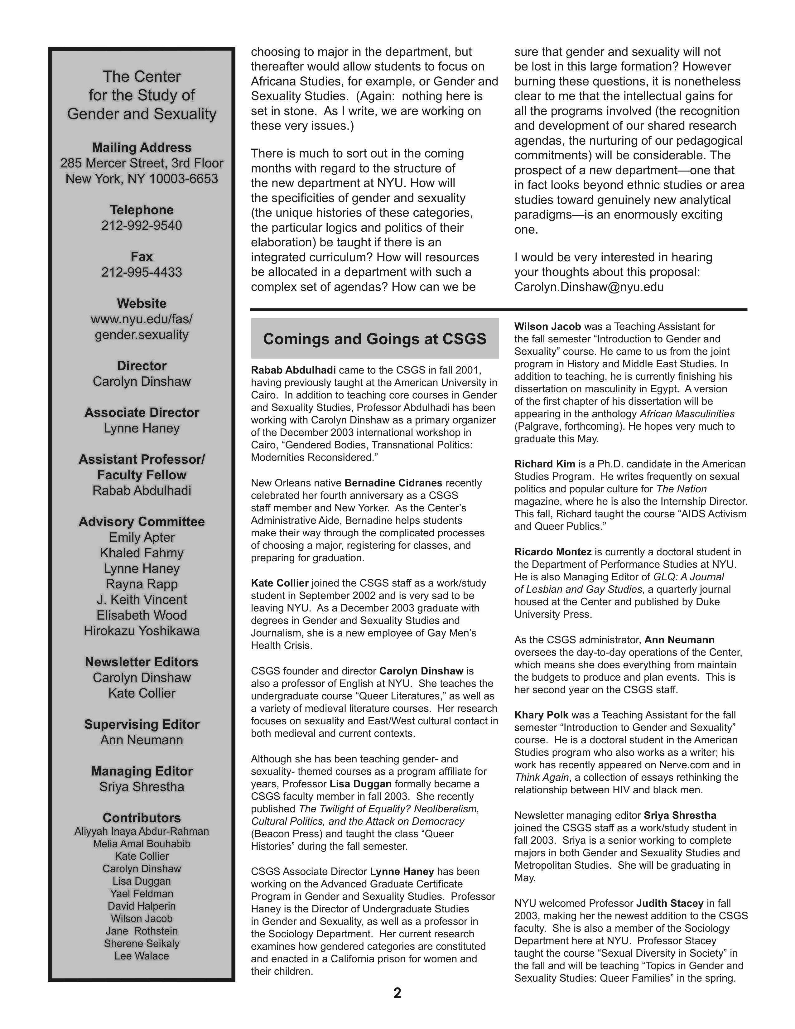 UploadedSpring 2004 CSGS Newsletter Director's Letter page 2