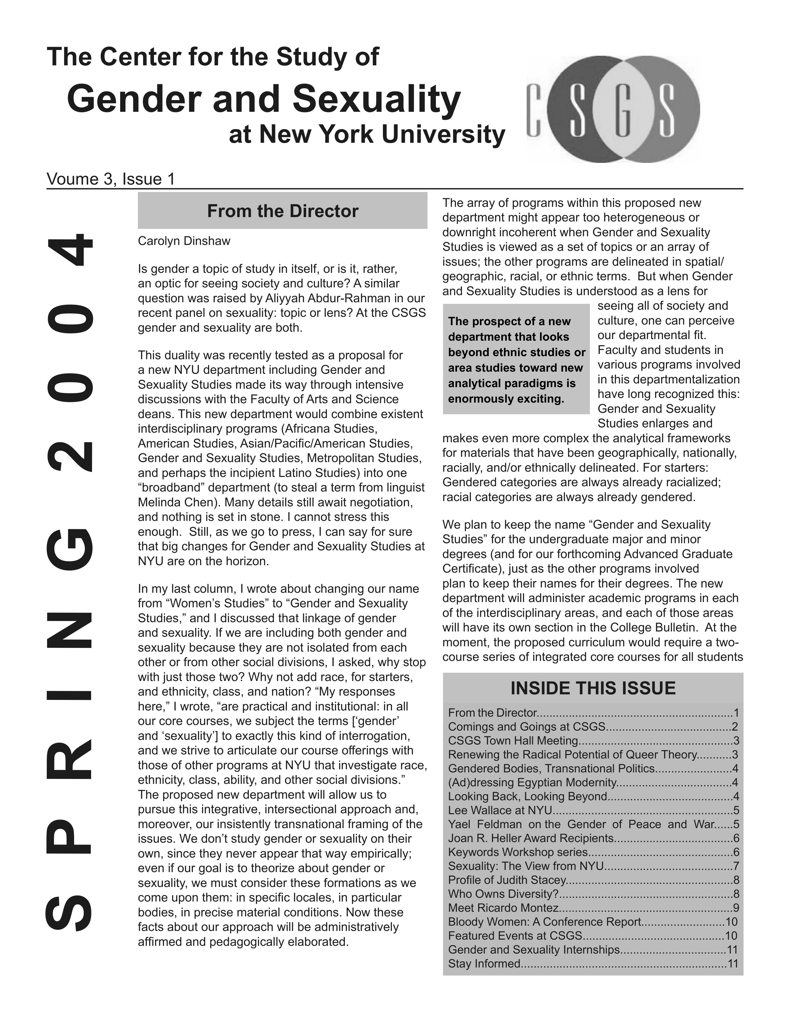 UploadedSpring 2004 CSGS Newsletter Director's Letter page 1