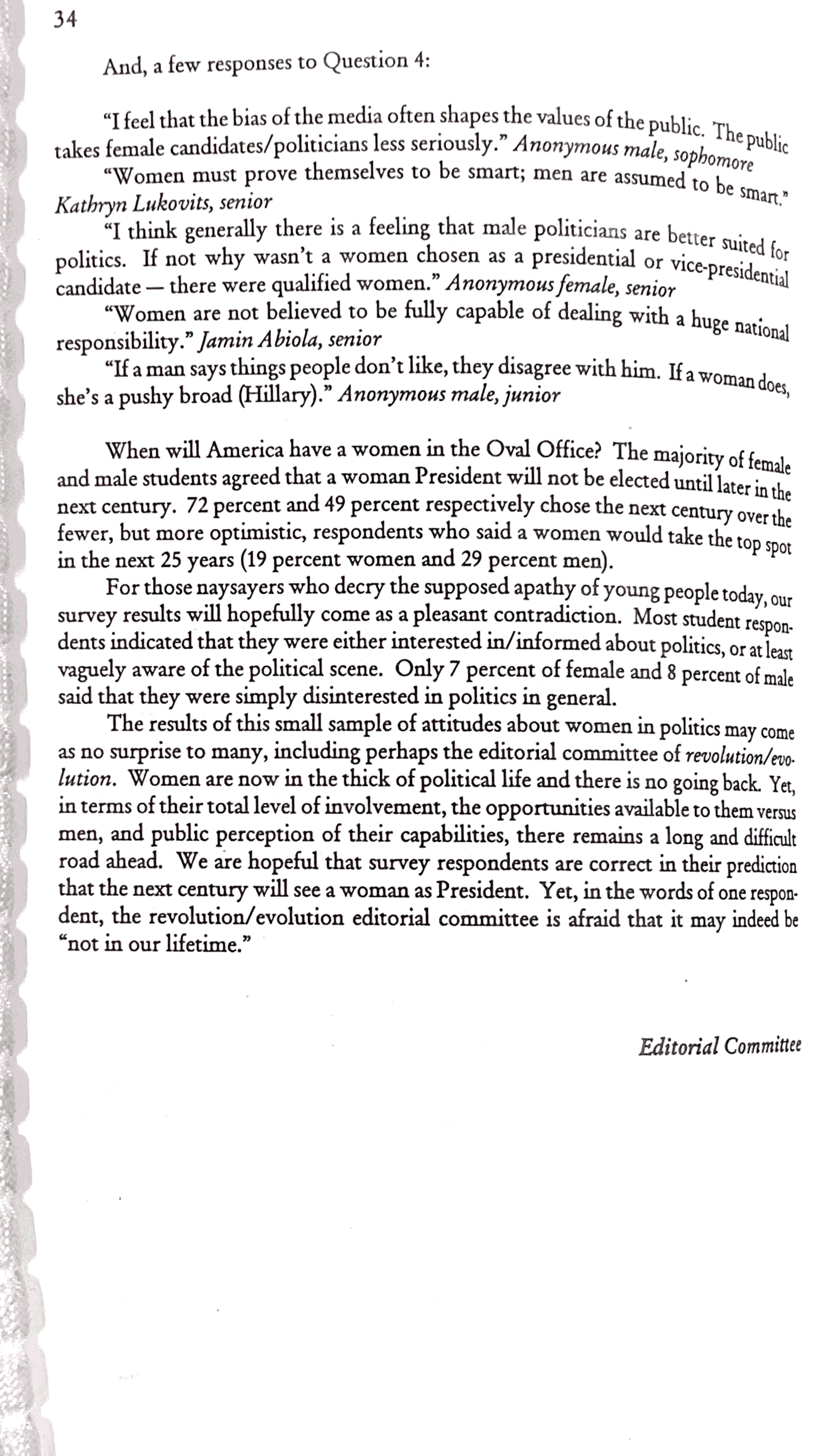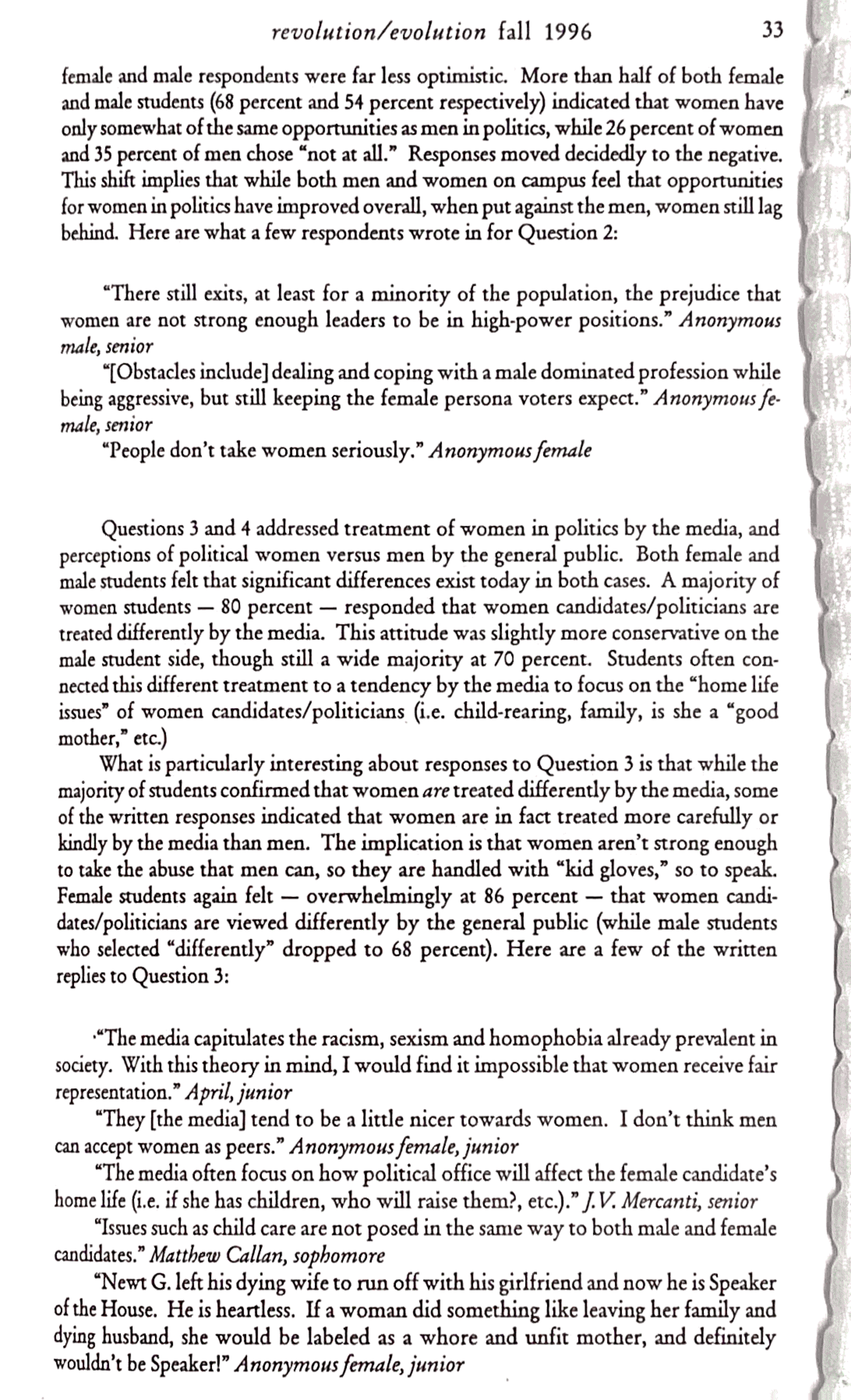 Uploadedrevolution/evolution Volume 2 Number 1, Fall 1996 - Women in Politics Article page 3