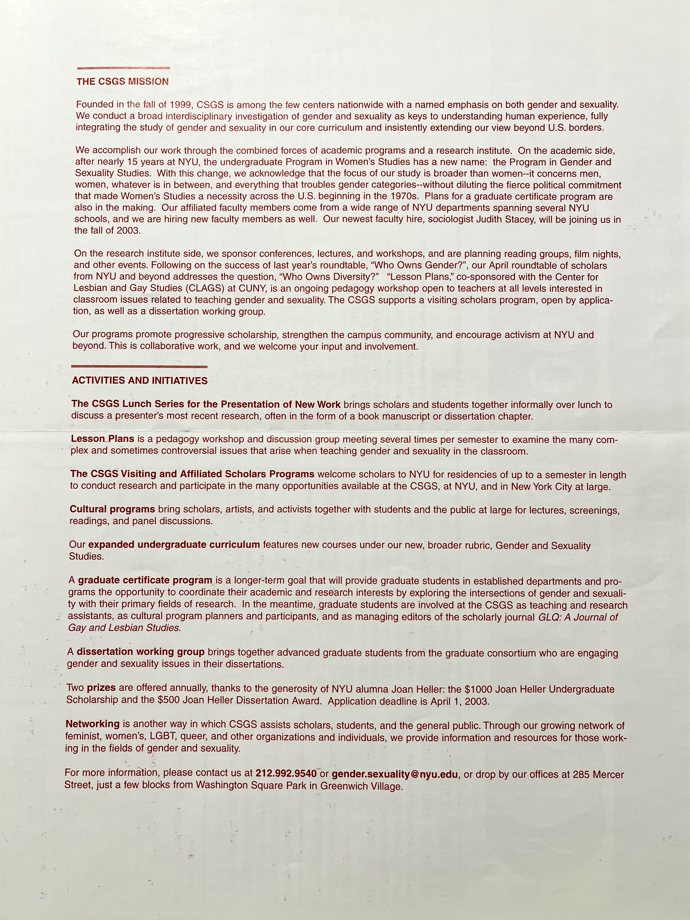 UploadedSpring 2003 CSGS Mission, Activities & Initiatives