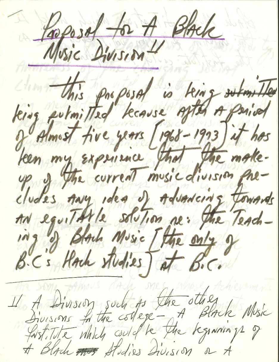 Digital Contexts: Manuscript: Proposal for a Black Music Division