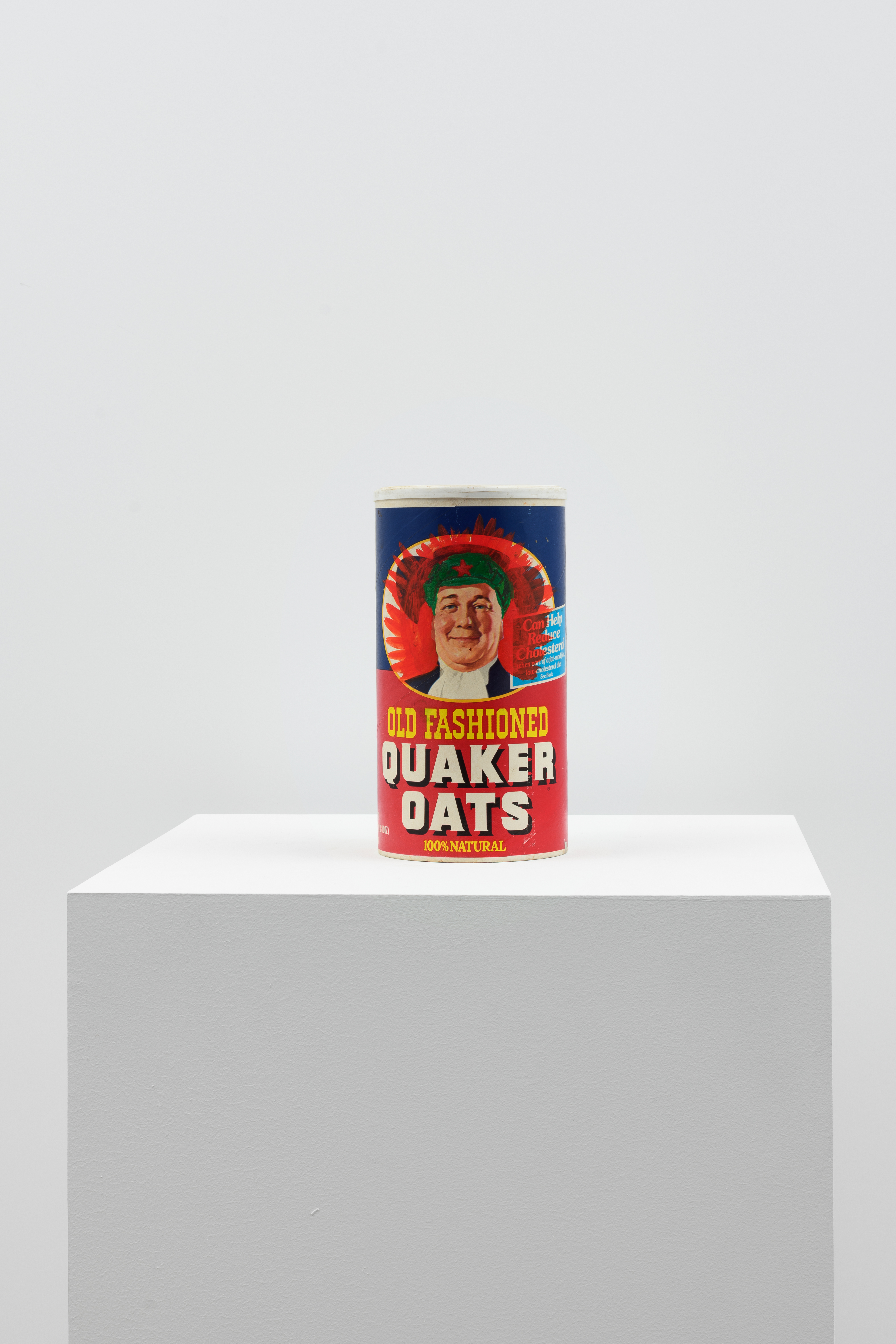 China-born, New York-based artist Zhang Hongtu’s Mao Quaker Oats Box #1 features an image of Mao Zedong painted on a cylindrical Quaker Oats container. Zhang is known for his satirical works of art featuring the former Chinese political leader. Adopting a Pop art aesthetic, Zhang combines political portraits with non-traditional, everyday materials, such as cereal cartons. His work serves as a reflection on his desire to pursue artistic freedom in New York City. Mao Quaker Oats Box #1 was created twelve years after the death of Mao Zedong and amidst a growing, global Chinese economy.