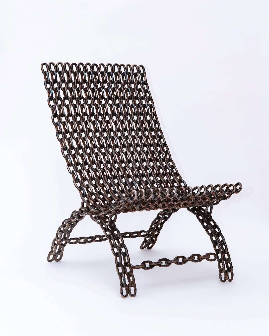 Male Fantasies is a galvanized steel chair constructed from welded strands of linked chain, forming the iconic shape of a butaque chair鈥攂oth functional and sculptural in its presence. Originating in colonial Mexico, the butaque is a low, wide-seated lounge chair that merges Spanish, Indigenous, and African design traditions, historically associated with tropical domestic interiors and interpreted by modernist designers such as Clara Porset, William Spratling, Josef Albers, and Molly Gregory, among others. Cerrillo鈥檚 use of chain and the charged title evoke layered associations with masculinity, power, aesthetics, language, and the domestic sphere. By fusing libidinal energy with design modernism, the work becomes a site where psychic abstraction and social critique intersect.