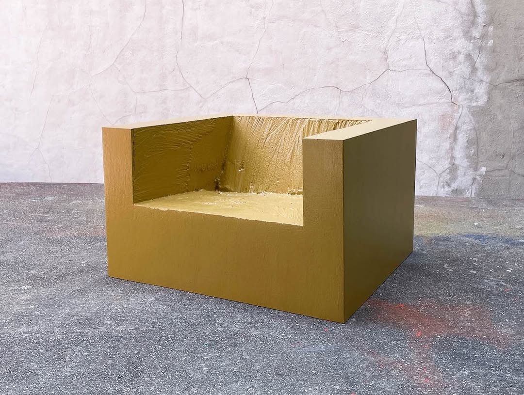 The Club Chair is part of a furniture series made from hand-carved industrial-grade foam, coated in thick layers of pigmented rubber. Blurring the line between utility and sculpture, the chair’s dense, skin-like surface and brute proportions evoke dissonant sensations of unexpected softness and visual unease.